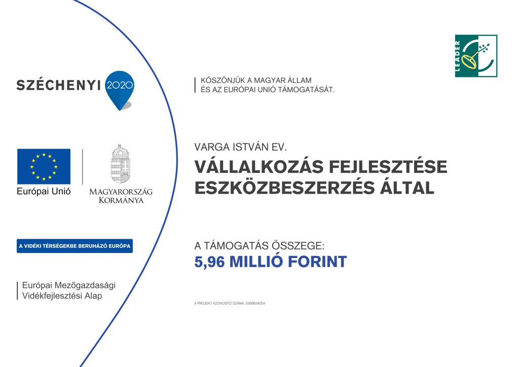 - Projekt címe: Vállalkozás fejlesztése eszközbeszerzés által